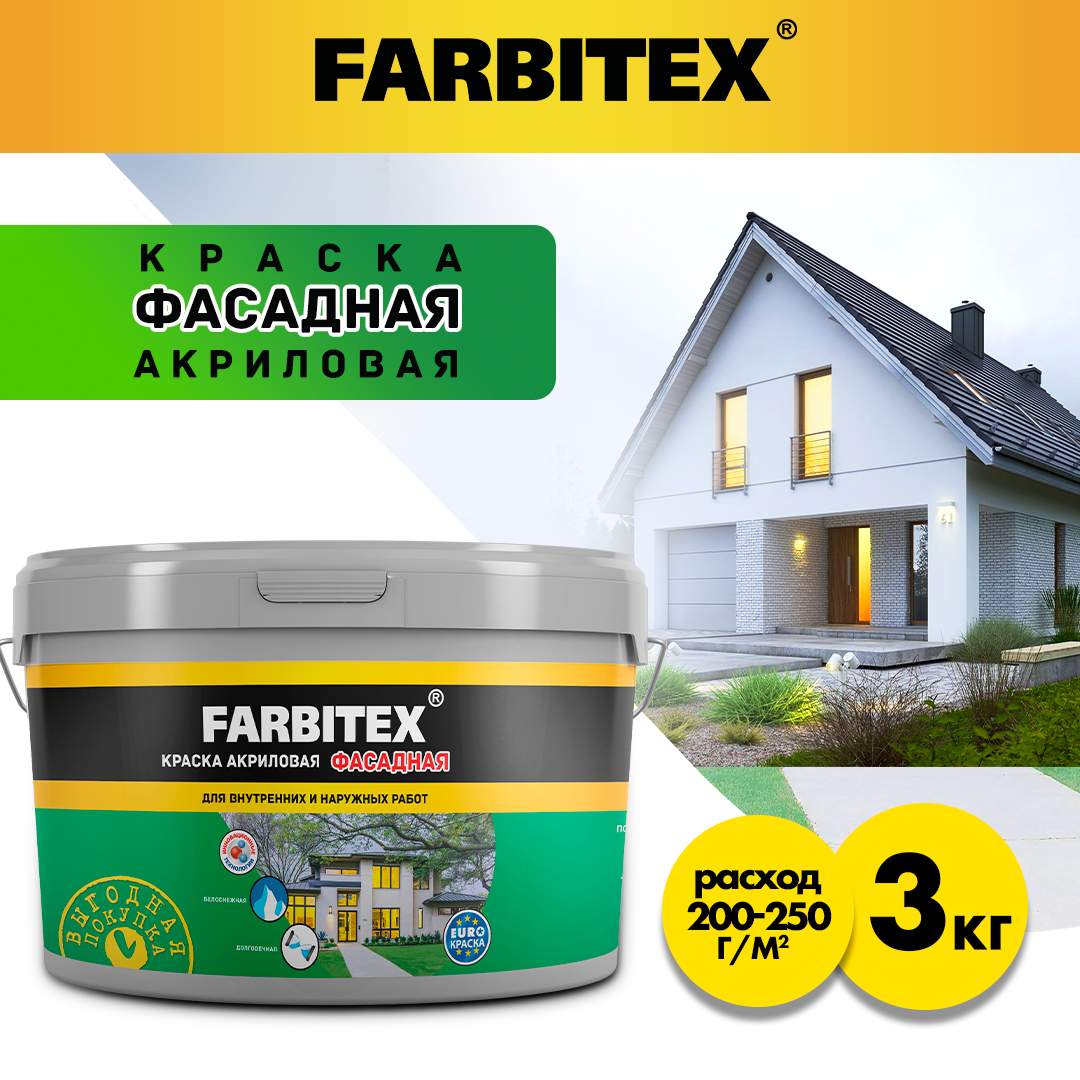 Краска фасадная акриловая FARBITEX 3 кг информация: