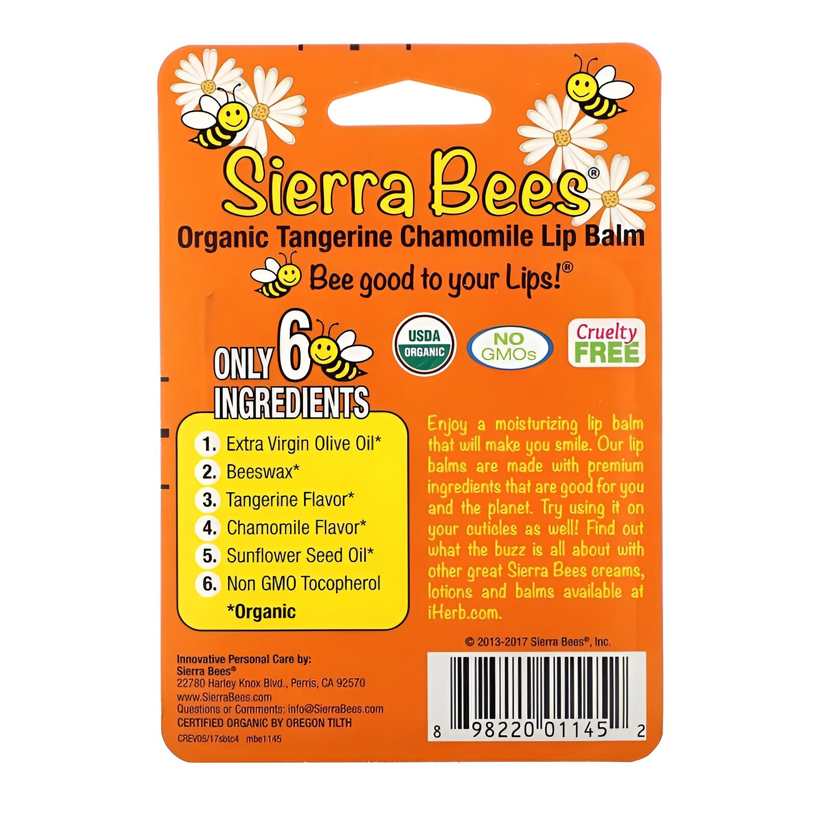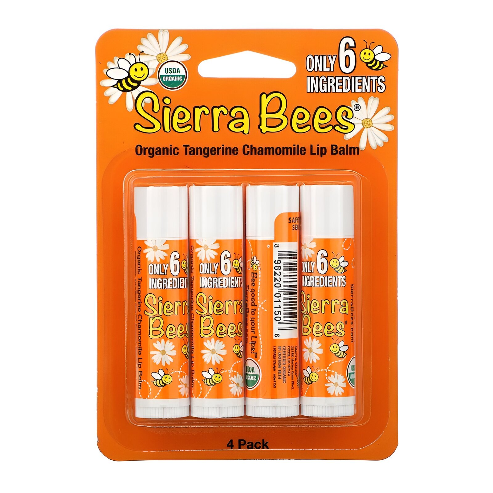 10 цен на Sierra Bees, Органические бальзамы для губ, мандарин и ромашка, 4 шт. в упаковке, 4,25 г каждый