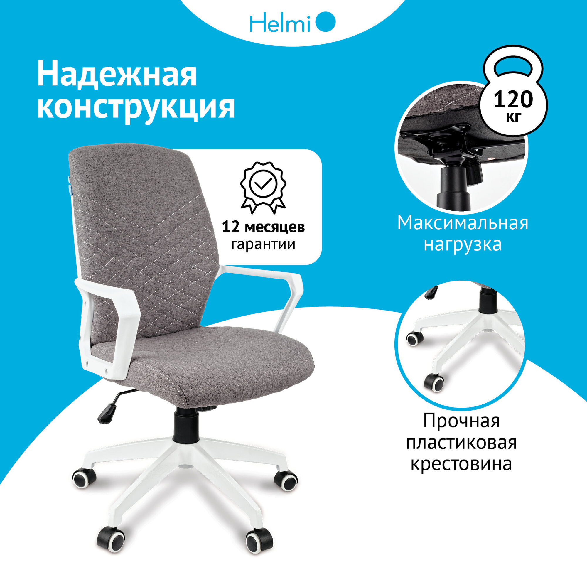 10 цен на Компьютерное офисное кресло (стул) с подлокотниками Helmi HL-М05 "Ambition", ткань серая, пластик белый, механизм качания
