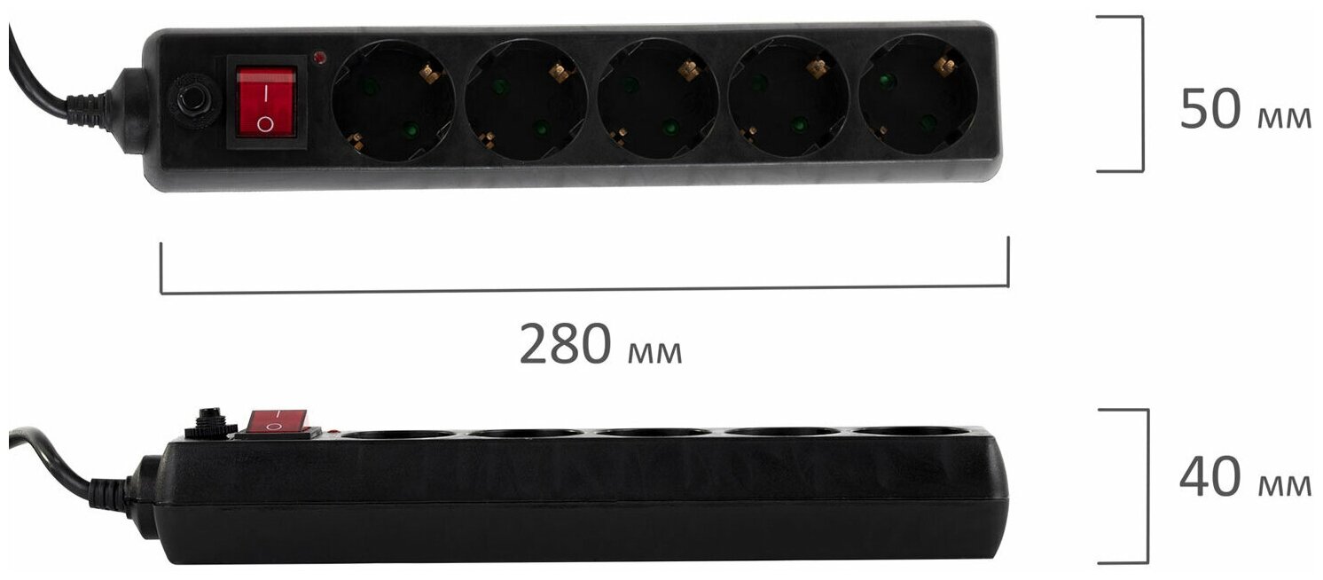 Сетевой фильтр SONNEN SPB-185, 5 розеток с заземлением, выключатель, 10 А, 1,8 м, черный, 513656