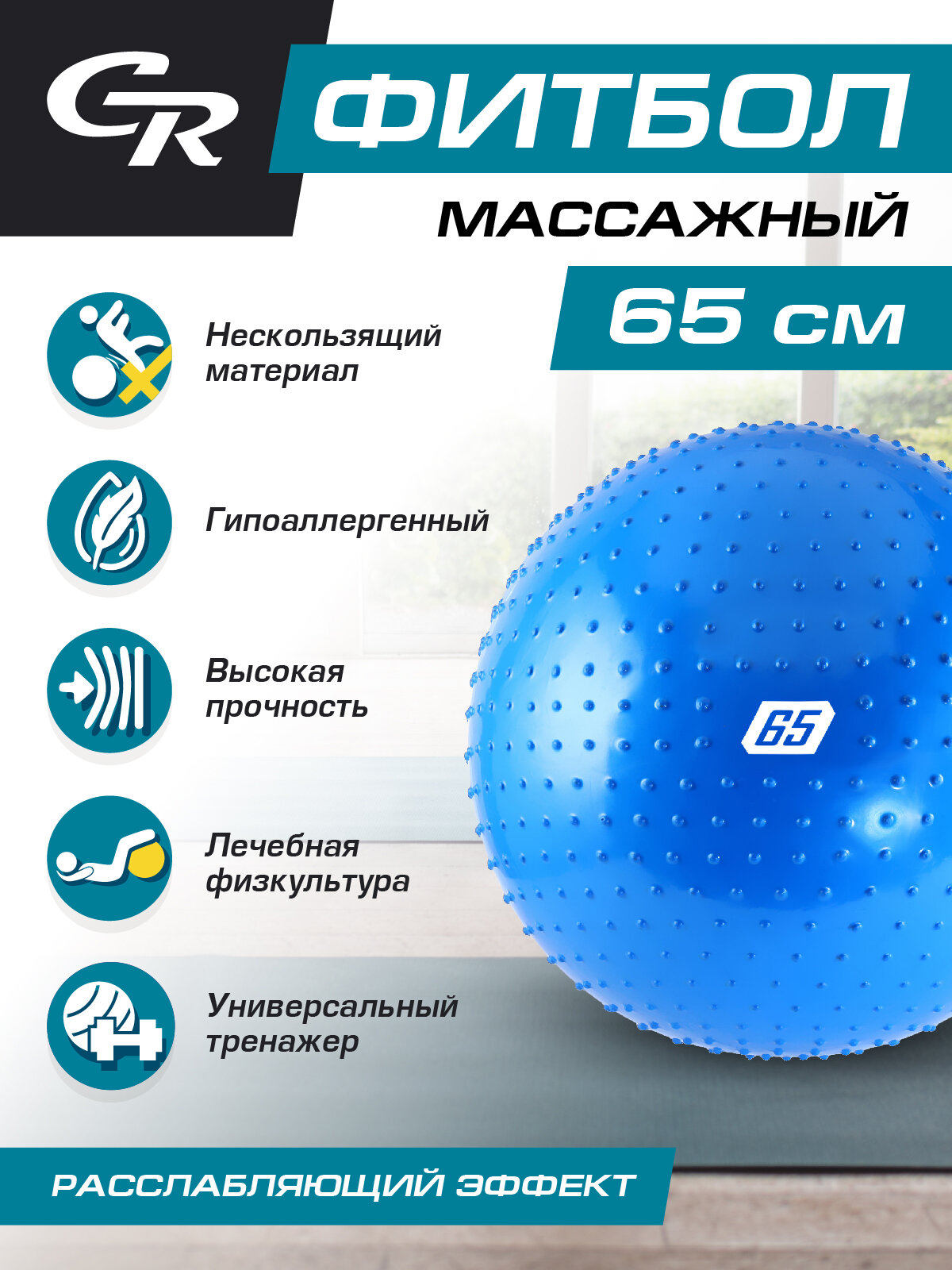 Мяч гимнастический массажный CR, серебристый, 65 см, JB0206585 1 000 ₽
