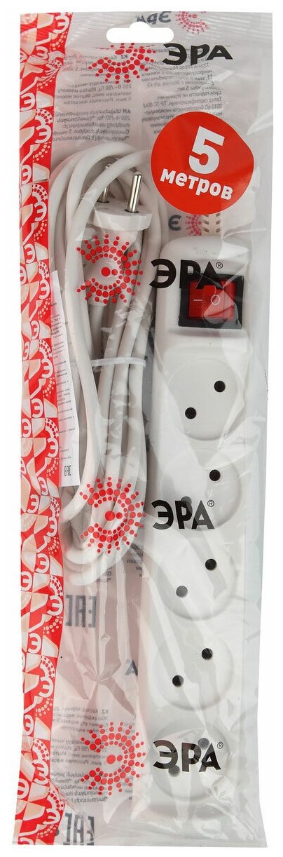 Отзывы на Удлинитель электрический ЭРА U-5s-5m-2x1 без заземления c выключателем 5 розеток 5м ПВС 2x1мм² 10А арт. Б0044057 (1 шт.)