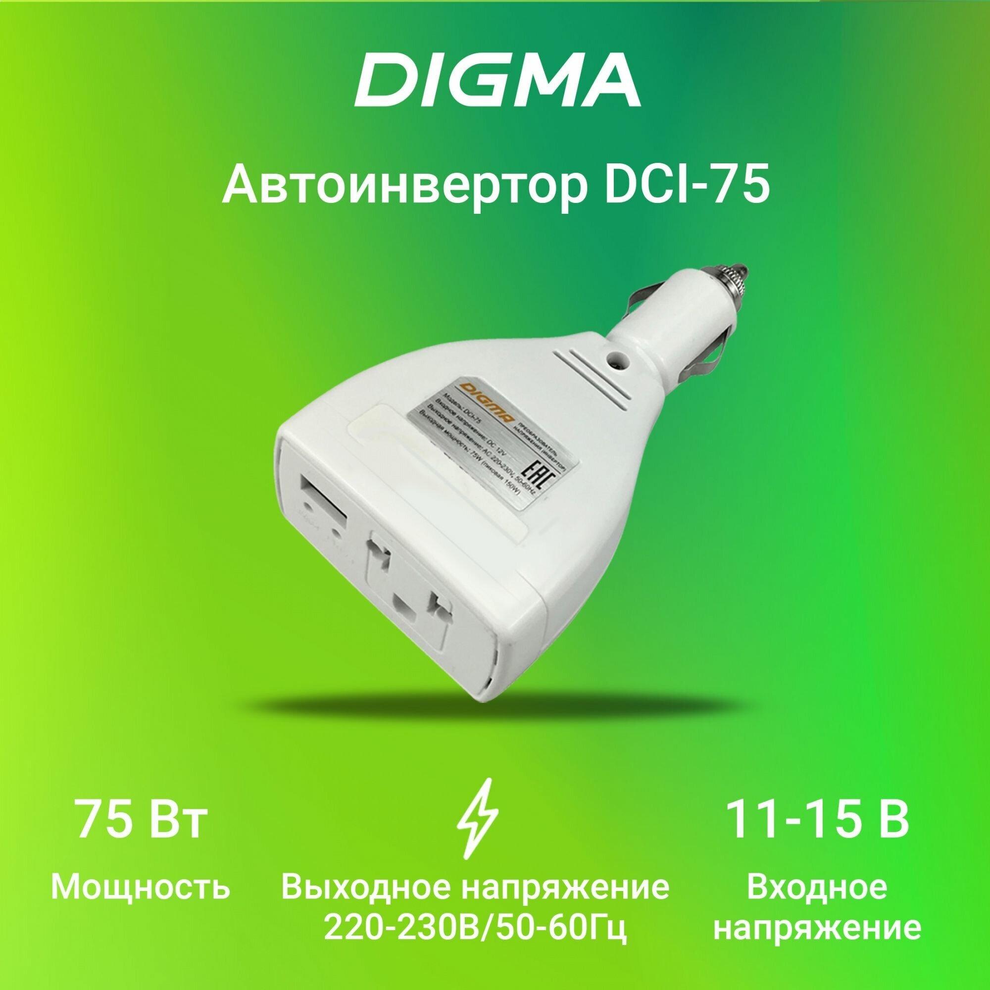 DIGMA Преобразователь напряжения Digma DCI-75 автоинвертор, 75 Вт
