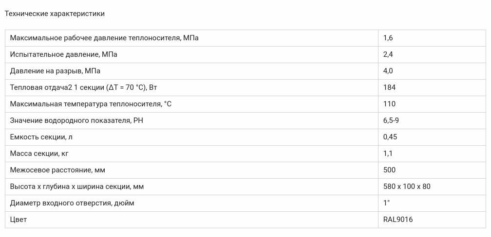 | Объем воды в секции | 0 л |