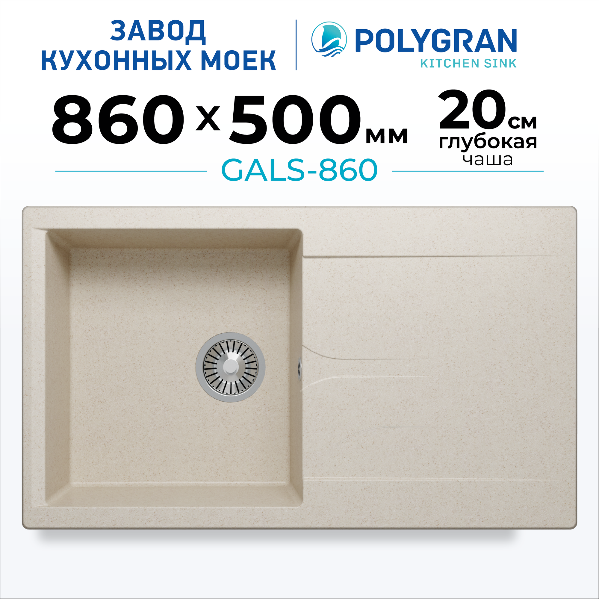 10 цен на Мойка для кухни POLYGRAN Gals-860 каменная с крылом (№327 Кремовый)