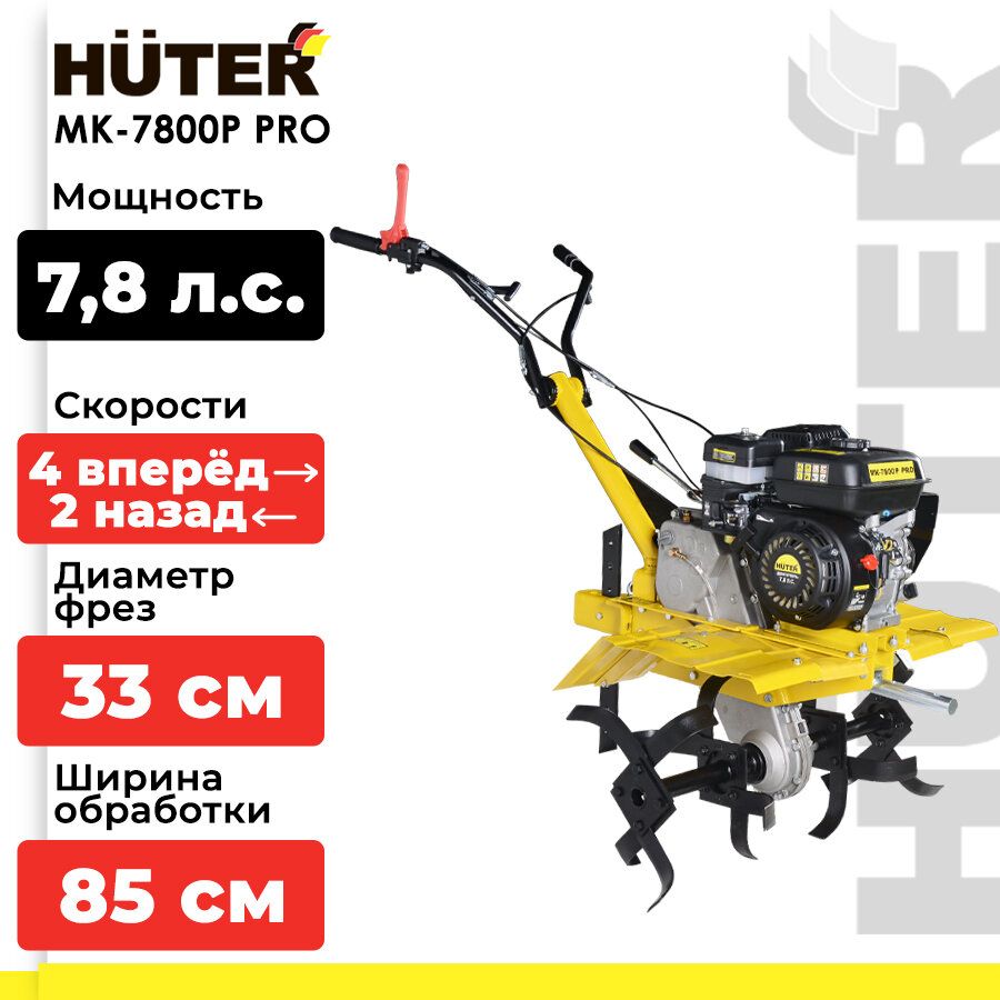 Мотоблок / Сельскохозяйственная машина МК-7800P PRO Huter (7,5 л.с., четырехтактный, бензин, бак – 3.6 л, ширина – 85 см) информация: