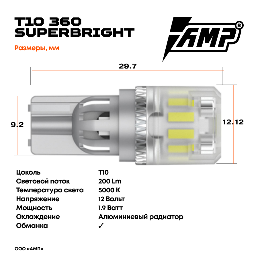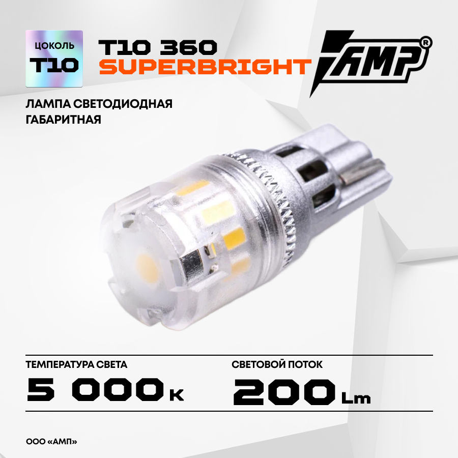 Светодиод габаритный AMP 360 SuperBright T10 информация: