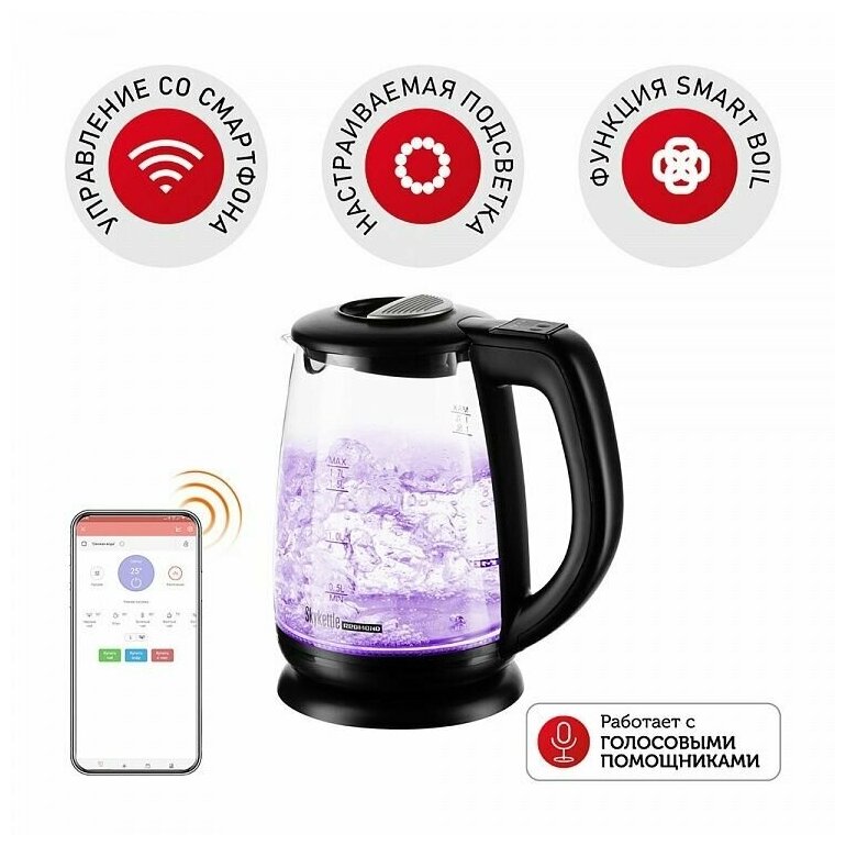 Электрический чайник со стеклянной колбой РЕДМОНД KG255, 1,5 л, LED-подсветка, автоотключение, поворот 360°, черный
