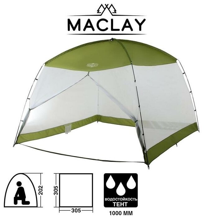 Шатёр туристический Maclay, однослойный, 305х305х202 см, цвет зелёный