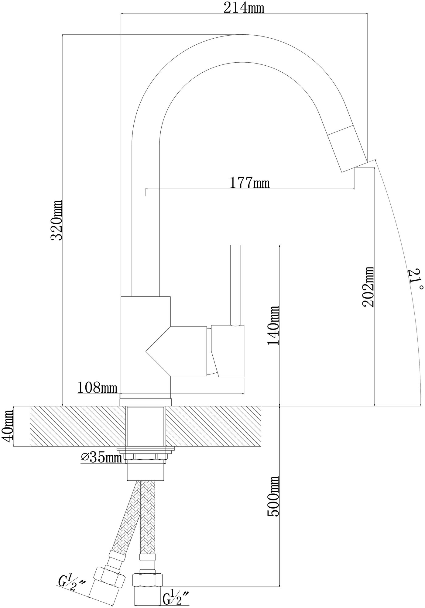 | Длина излива | 177 мм |
