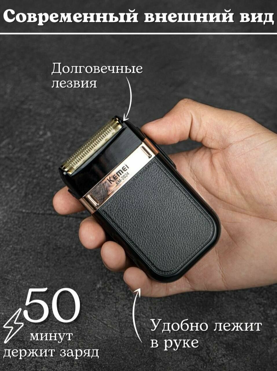 KM-2024 Kemei USB-перезаряжаемая дуплексная бритва с двойной сеткой и золотой и серебряной сеткой, можно мыть все тело 1 134 ₽
