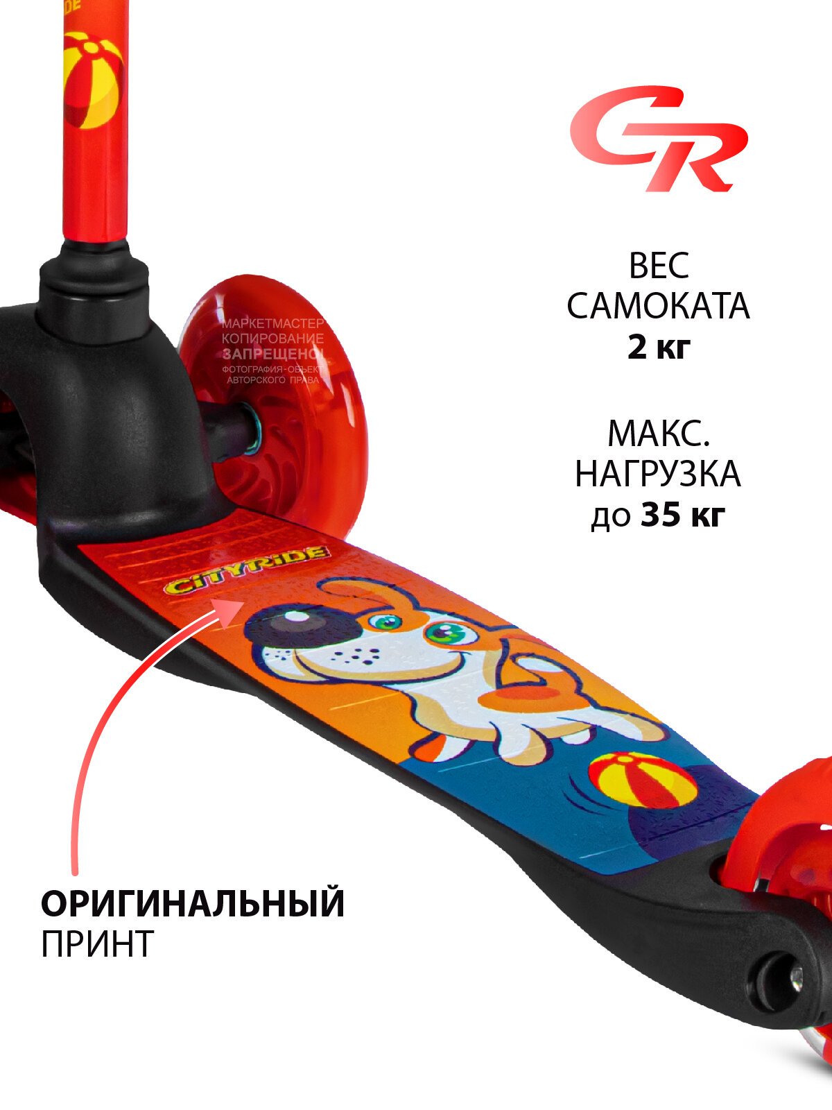 Детский 3-колесный самокат CITY-RIDE CR-S4-05PR, красный
