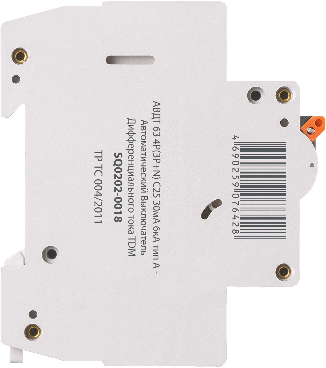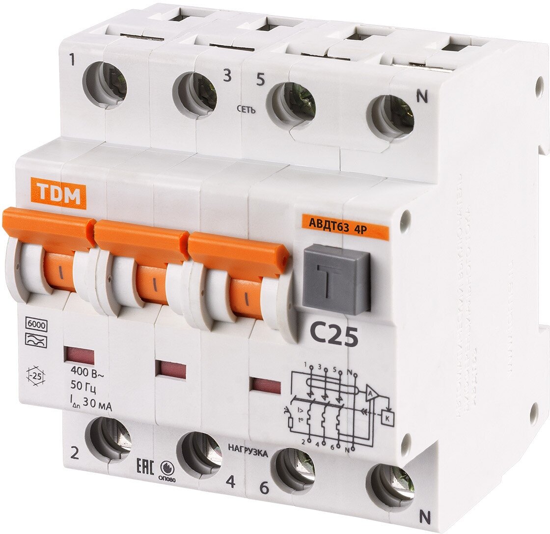 Дифференциальный автомат Tdm Electric АВДТ 63 4P(3Р+N) C25 30мА 6кА тип А (SQ0202-0018) информация:
