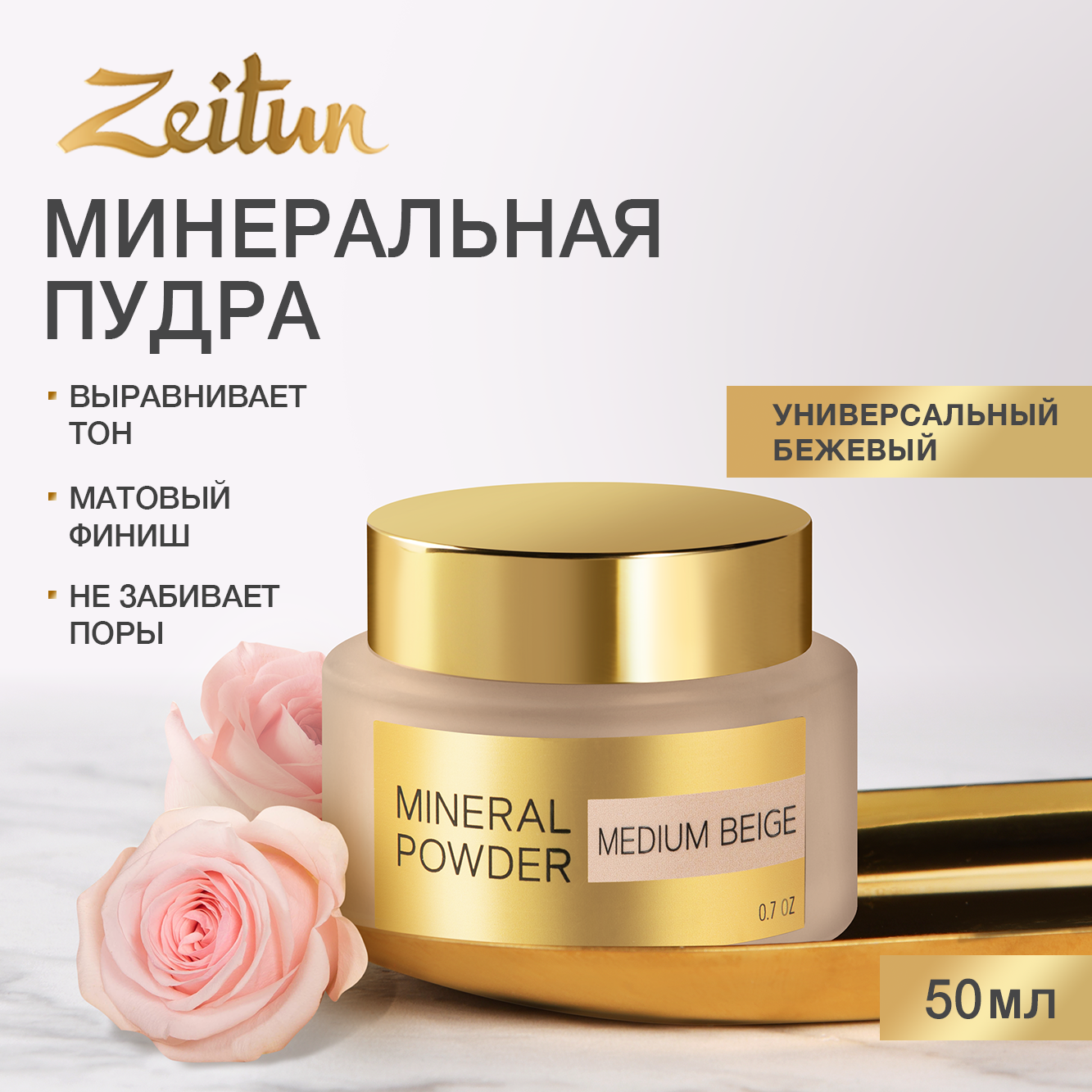 Zeitun Пудра для лица минеральная рассыпчатая, матирующая, оттенок Светлый бежевый, 50 мл 1 629 ₽