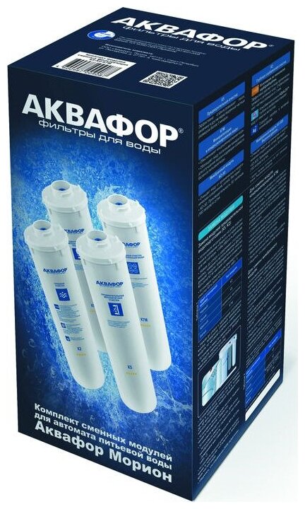 | Дополнительная информация | для фильтра DWM-101S Морион; в комплекте четыре модуля: K5 - предварительная очистка; K2 - глубокая фильтрация; K-50S - обратноосмотическая мембрана (верхний дренаж); K7M - постфильтрация и минерализация |