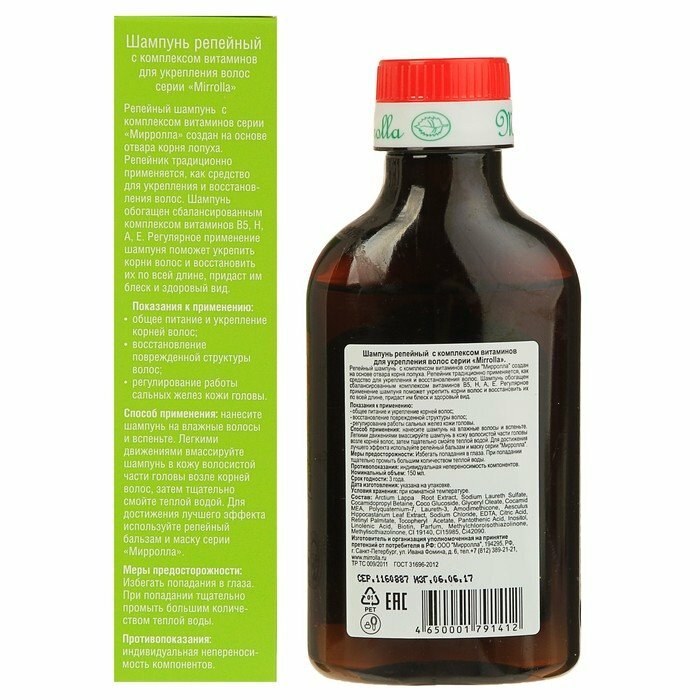Шампунь репейный Mirrolla, комплекс витаминов для укрепления волос, 150 мл./В упаковке шт: 1