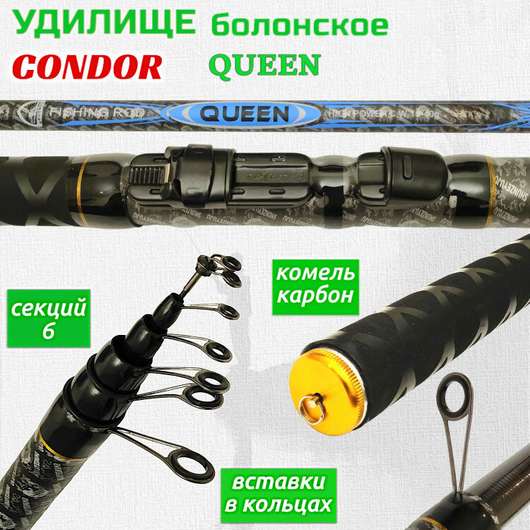 Удилище Condor Queen, c кольцами, длина 6 м, тест 15-40 гр carbon IM-8 информация: