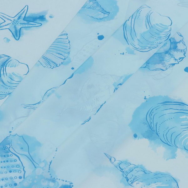 Штора для ванной комнаты VILINA водонепроницаемая полиэтиленовая 180х180 см Ракушки голубые