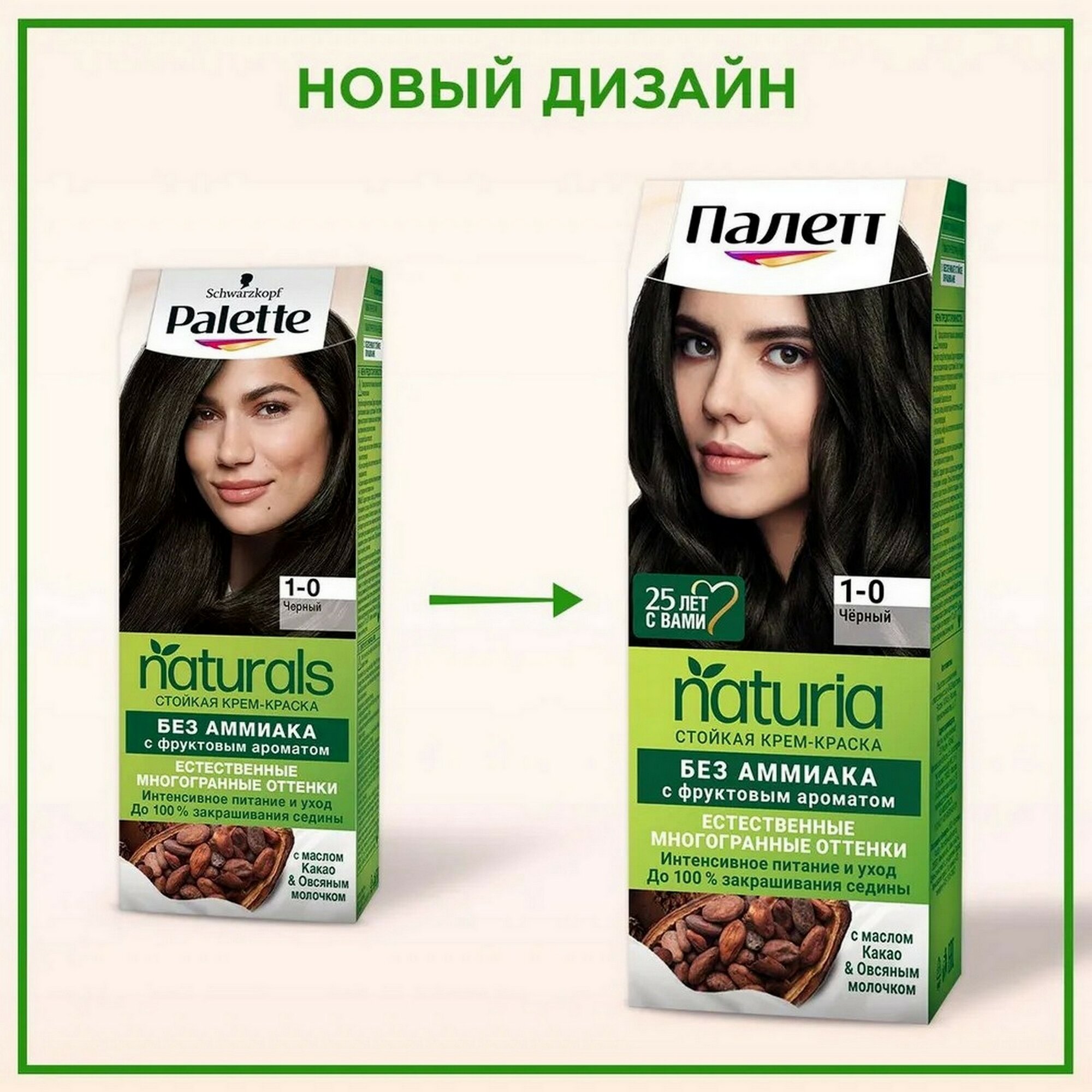 Палетт Naturia Стойкая крем-краска для волос, 1-0 Черный, 110 мл - 1 шт информация: