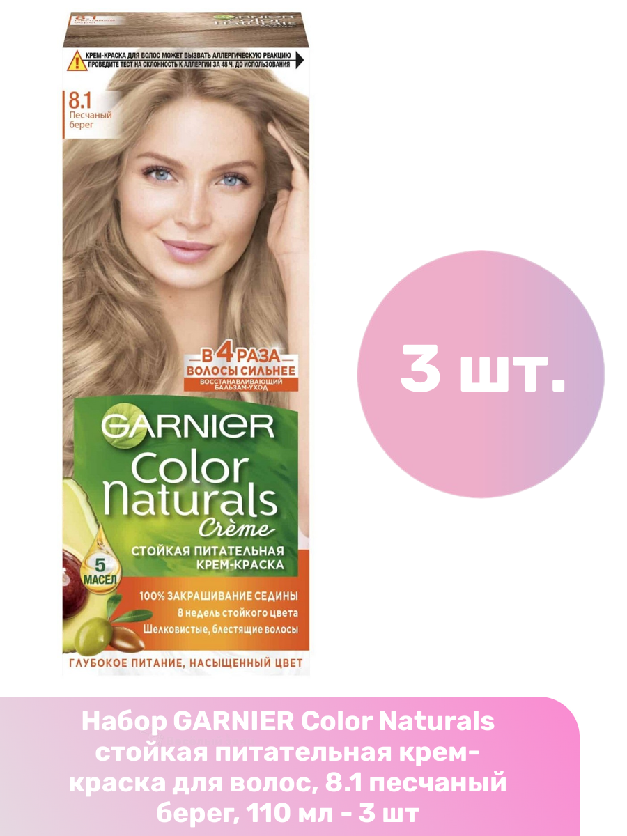 GARNIER Color Naturals стойкая питательная крем-краска для волос, 8.1 песчаный берег, 110 мл - 3 шт информация: