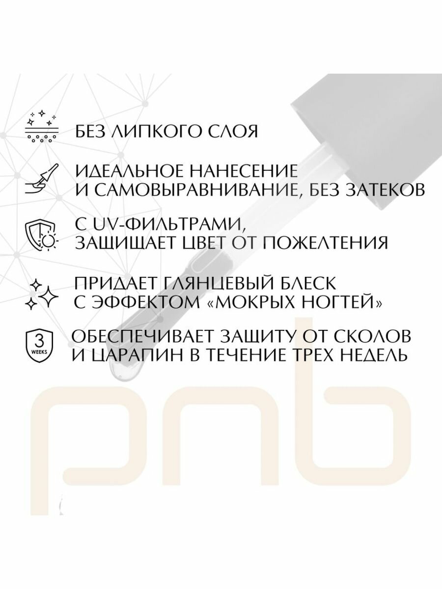 PNB Protect Glow TOP глянцевый топ для ногтей и гель-лака без липкого слоя с УФ фильтрами UV/LED 8 мл