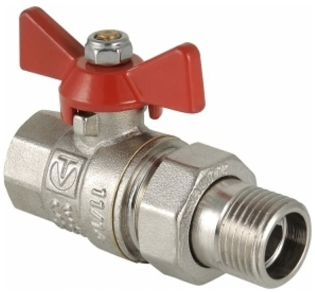 Кран шаровой латунный Valtec Base 1/2 ВР(г) х 1/2 НР(ш) бабочка прямой (VT.218.N.04)