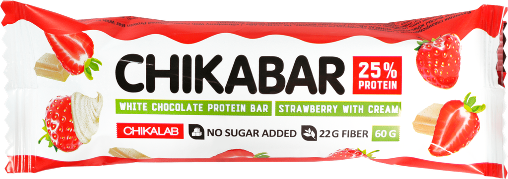 Батончик протеиновый CHIKALAB с начинкой клубника со сливками, глазированный, 60г информация: