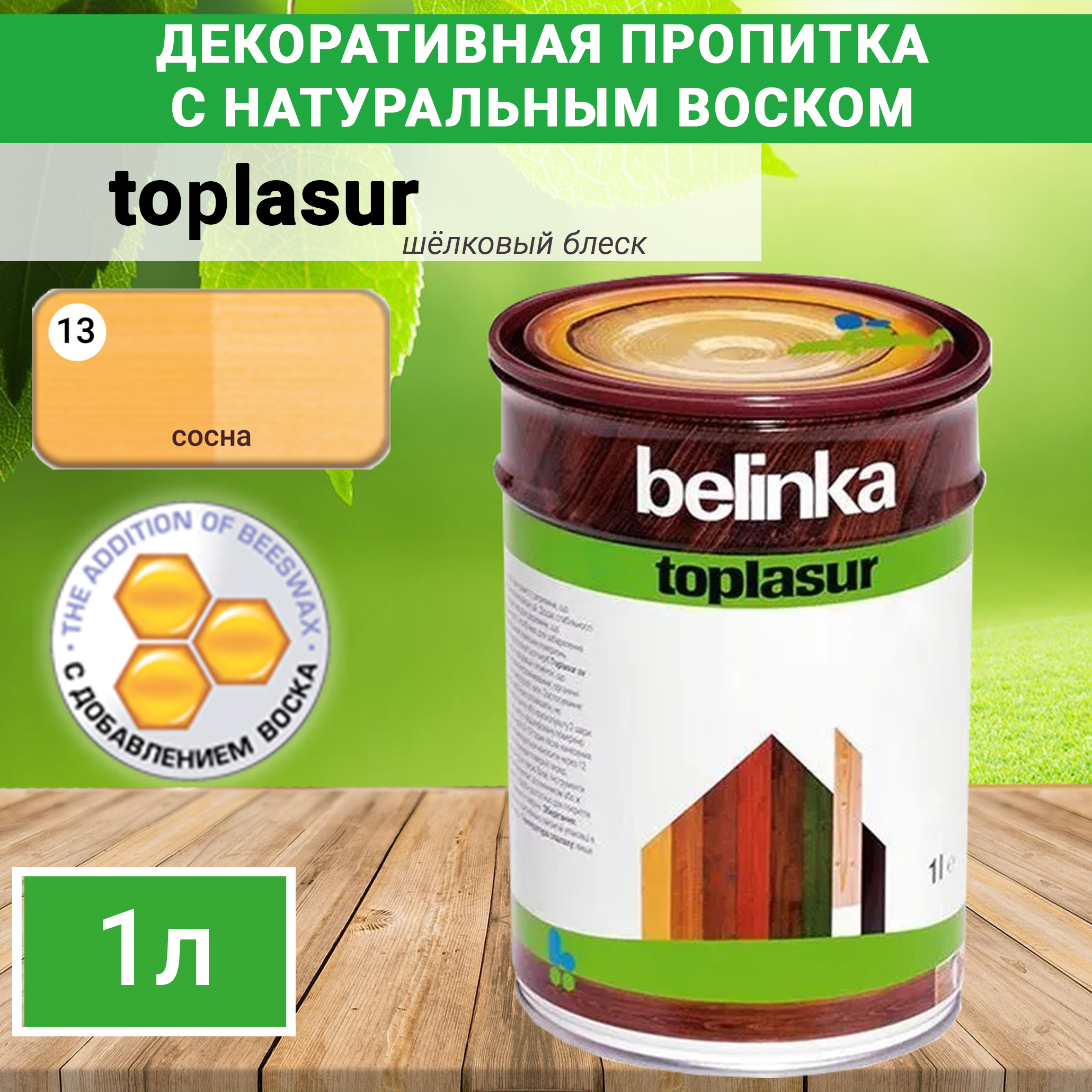 BELINKA TOPLASUR №13 Сосна 1л. Лазурное покрытие для защиты древесины 51213