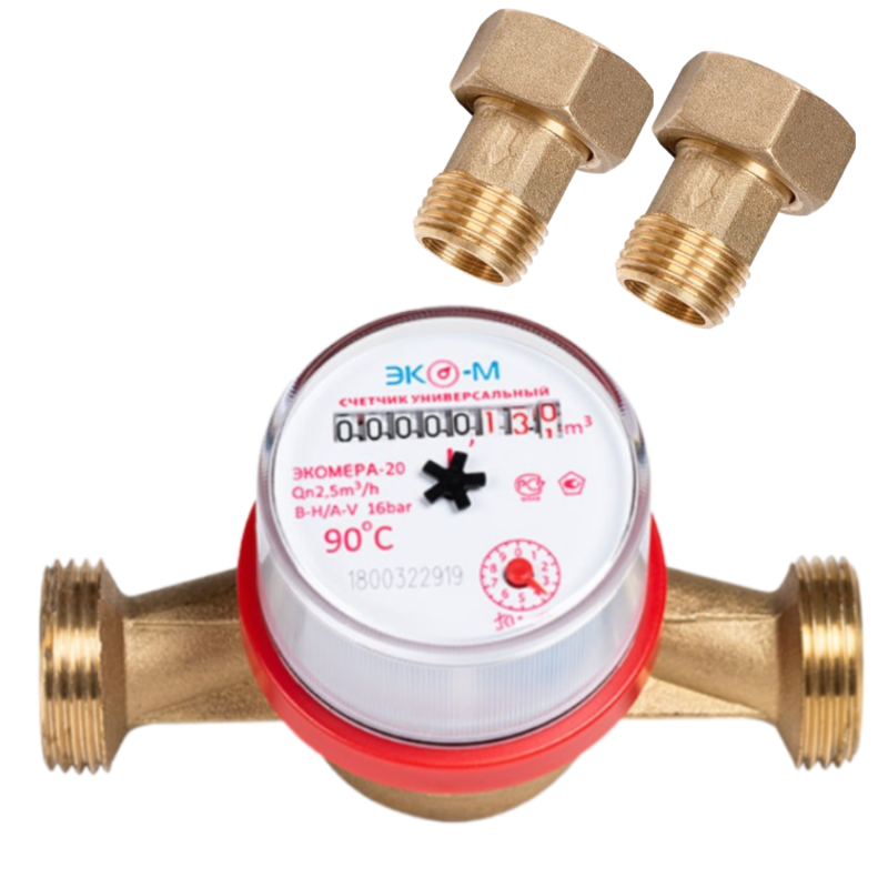 Отзывы на Счётчик г/в и х/в крыльчатый одноструйный Ду 20 Ру16 90С резьба В/К экомера Э-20У-130-СК