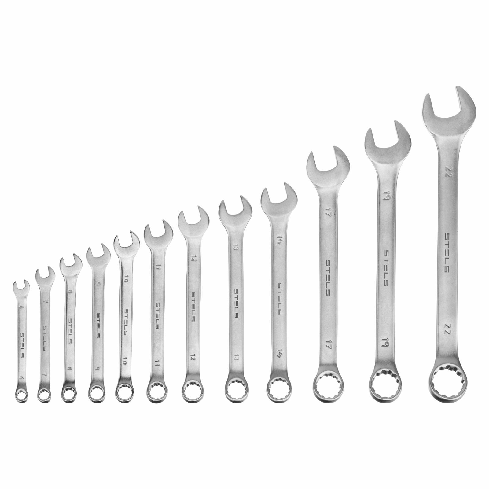 Отзывы на Набор ключей комбинированных 6-22 мм, 12 шт, CrV, матовый хром Stels 15421