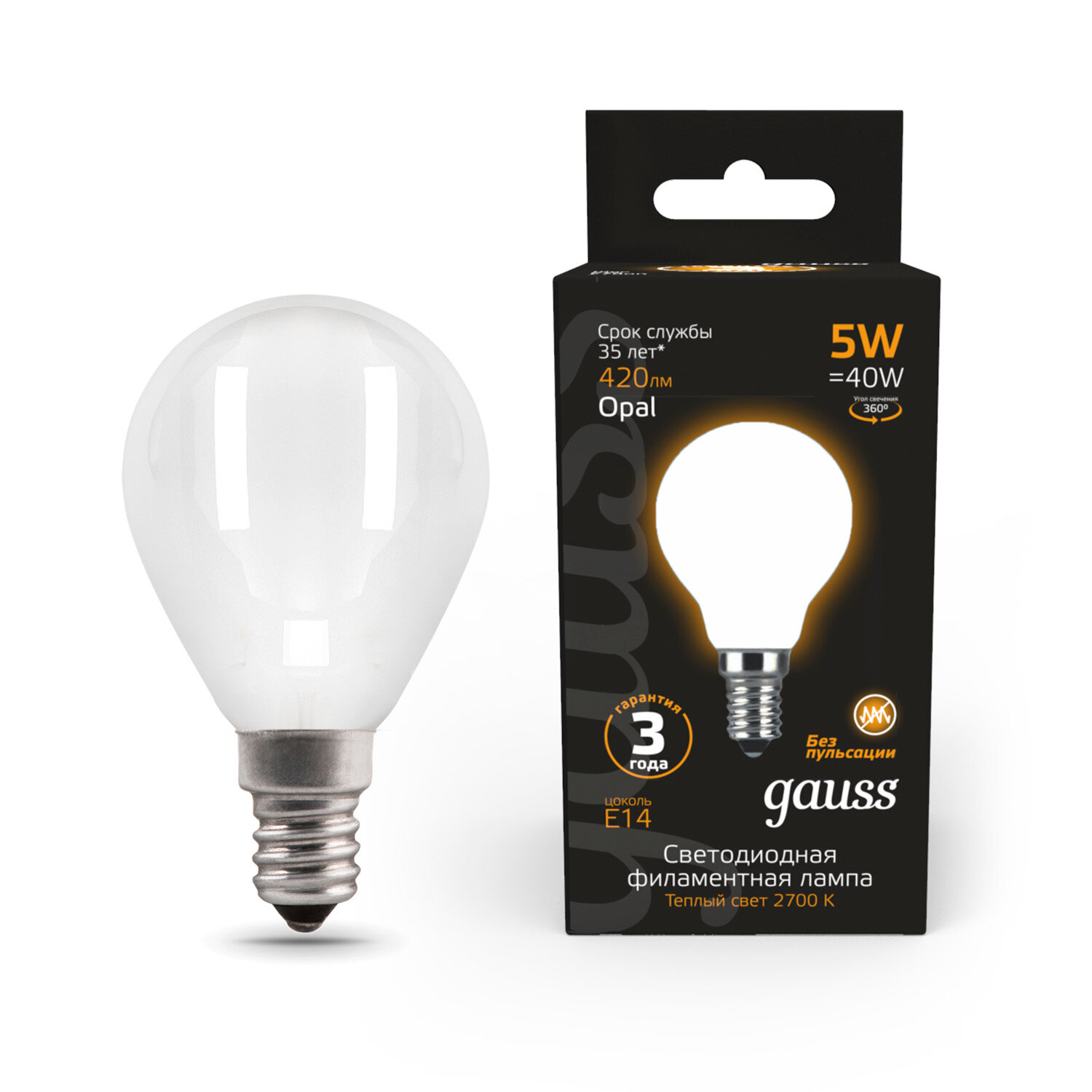 Отзывы на Лампочка светодиодная E14 Шар 5W теплый свет 2700K упаковка 10 шт. Gauss Filament