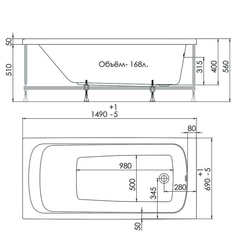 Ванна акриловая Triton Gamma 150х70 см без ножек (Щ0000023533) информация: