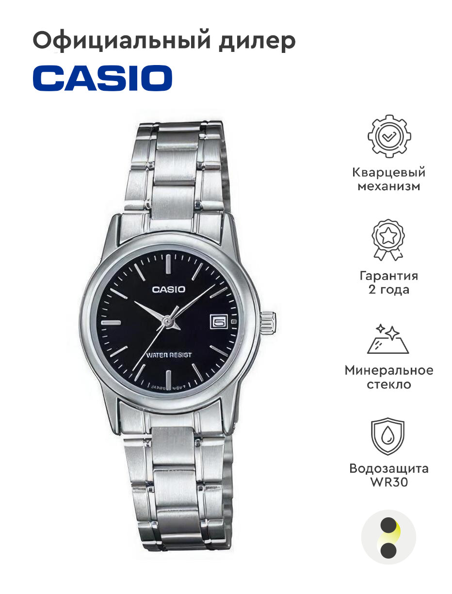 Наручные часы CASIO LTP-V002D-1A, серебряный, черный 3 185 ₽