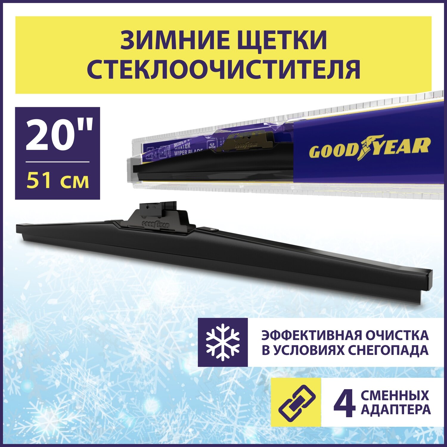 Щетка стеклоочистителя зимняя Goodyear WINTER 20"/51 cm, Дворник для автомобиля (4 переходника в комплекте)