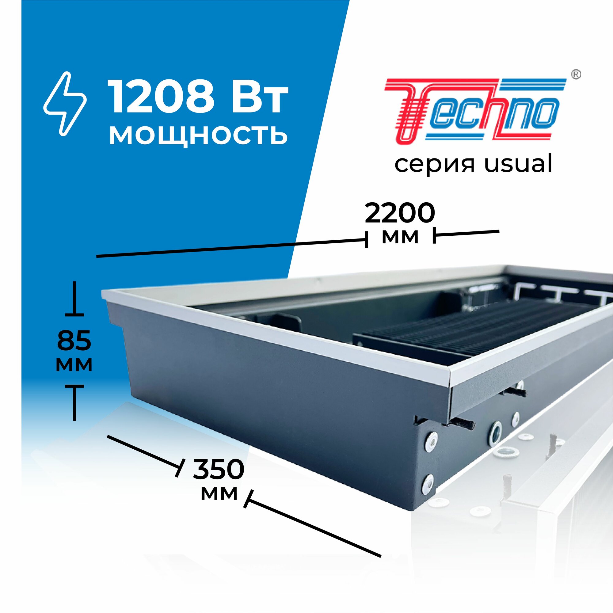 10 цен на Водяной конвектор с решеткой Techno Usual KVZ 350 - 85 - 2200 мм ( встраиваемый / внутрипольный ) с естесственной конвекцией