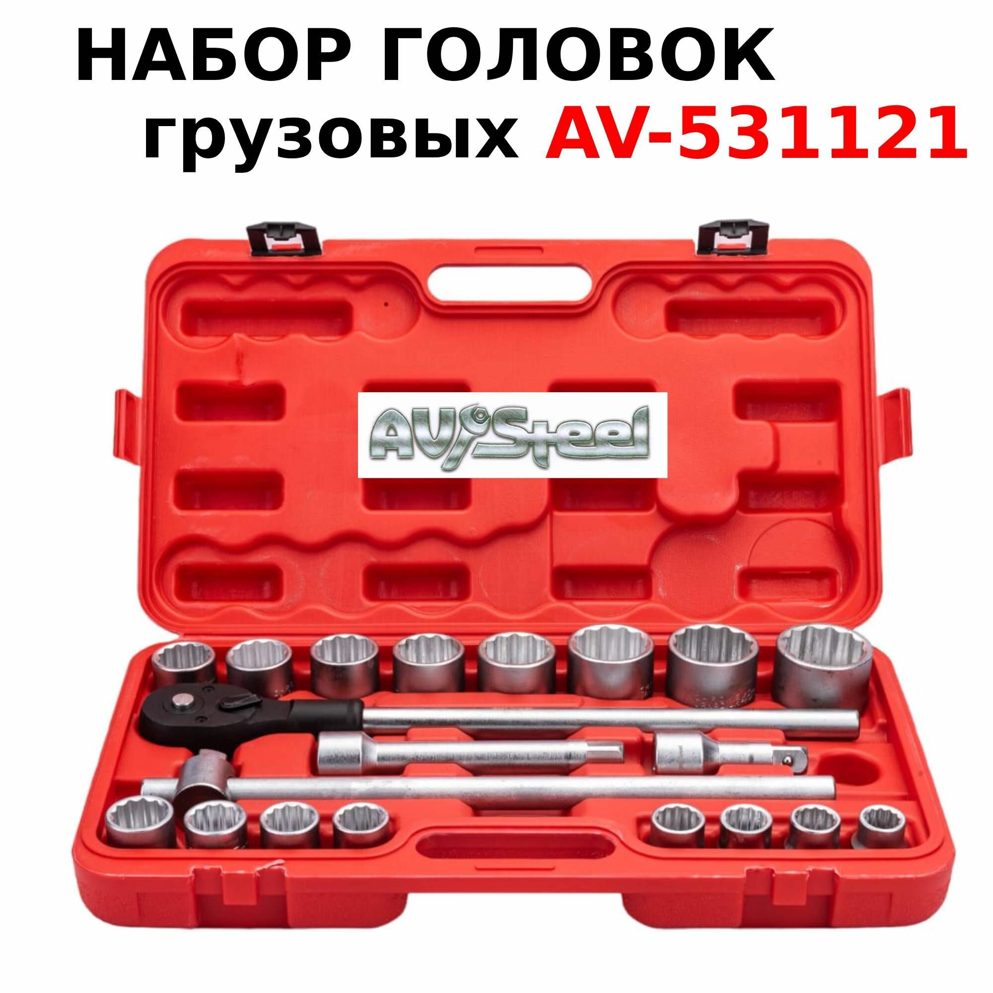 Набор головок грузовых с трещоткой, набор инструментов AV Steel 21 предмет, 3/4", профессиональный информация: