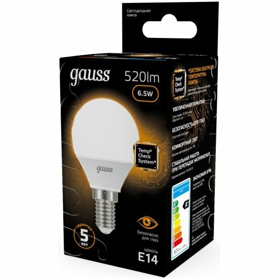 Отзывы на Светодиодная лампа Gauss LED Globe E14, 6.5W, 100-240 В, 3000K