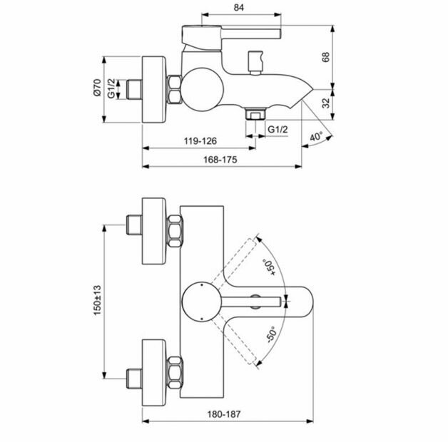 Cмеситель Ideal Standard CERALINE BC199U5 для ванны с душем