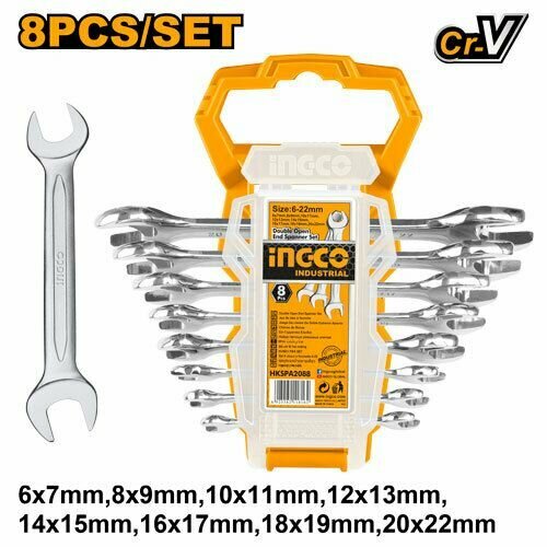 Набор двусторонних рожковых ключей Ingco INDUSTRIAL HKSPA2088 6-22 мм 8 пред.