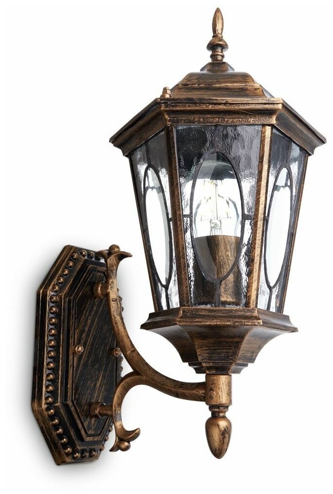 Уличные светильники FERON Светильник садово-парковый Feron PL160 шестигранный на стену вверх 60W E27 230V, черное золото информация: