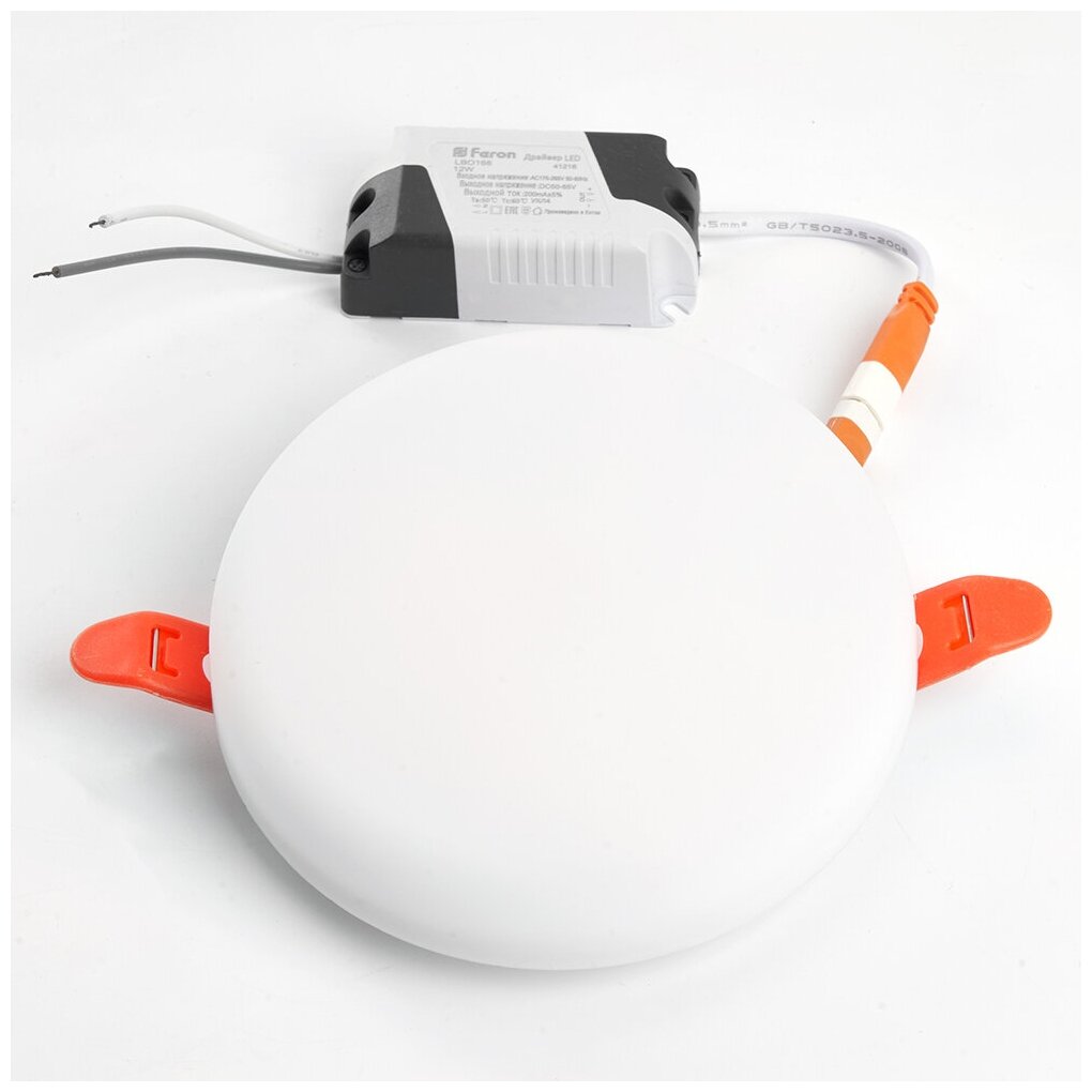 Feron светильник встр. светодиодн. даунлайт любое отверст d40-90 без рамк 12W(1200lm) 4000K 4K 120x20 AL509 41208 (арт. 737406)