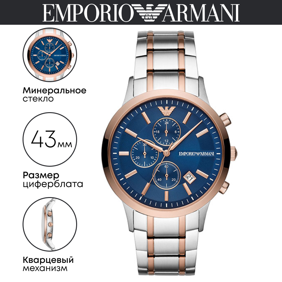 Наручные часы EMPORIO ARMANI AR2453 кварцевые, хронограф, секундомер, водонепроницаемые 8 980 ₽