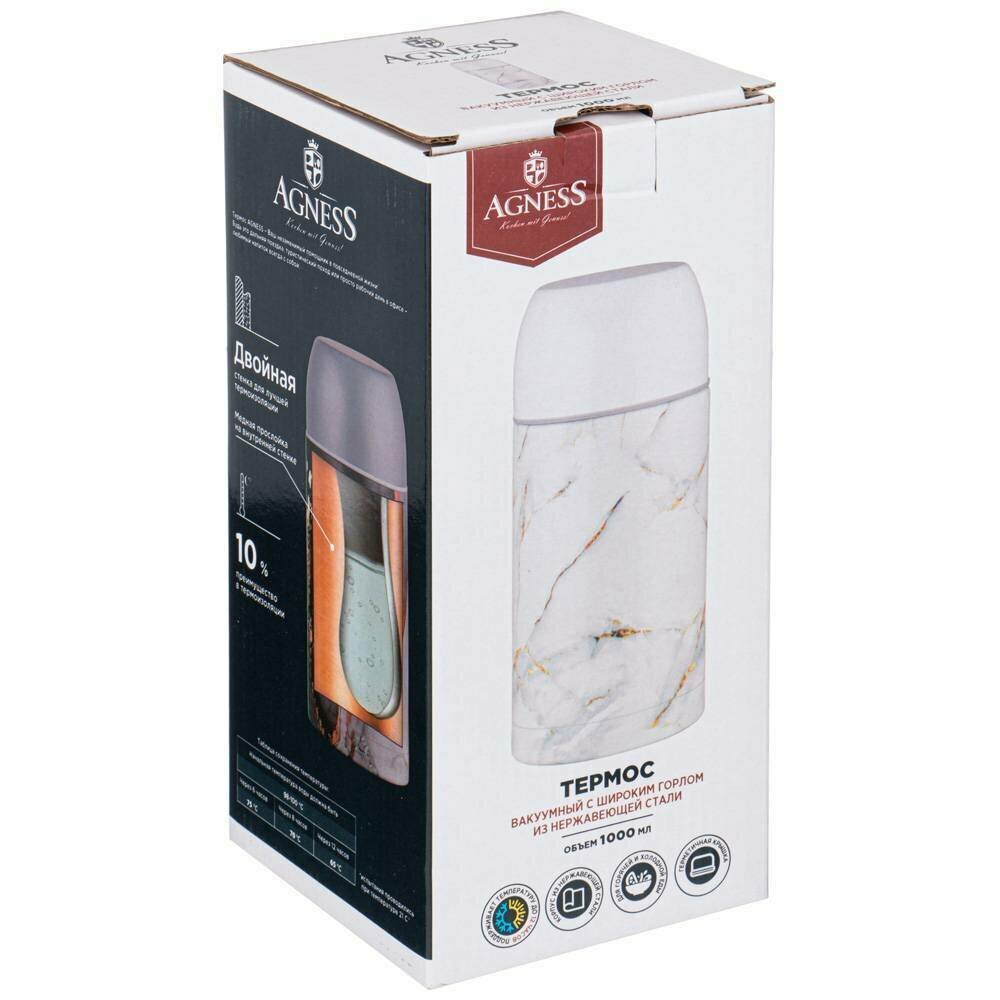 Термос вакуумный с широким горлом, 1000 мл,fantasy, колба из нерж. стали Agness (709-102)