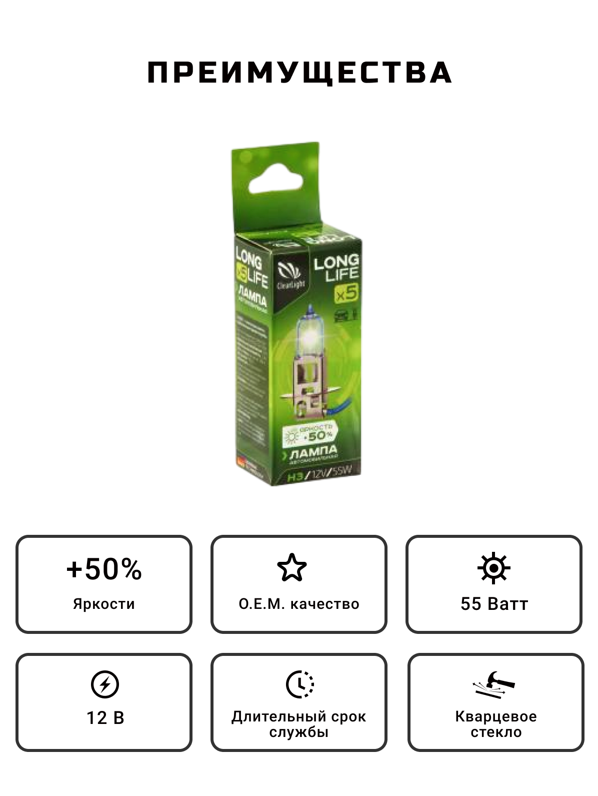 Лампа H3(Clearlight)12V-55W LongLife информация: