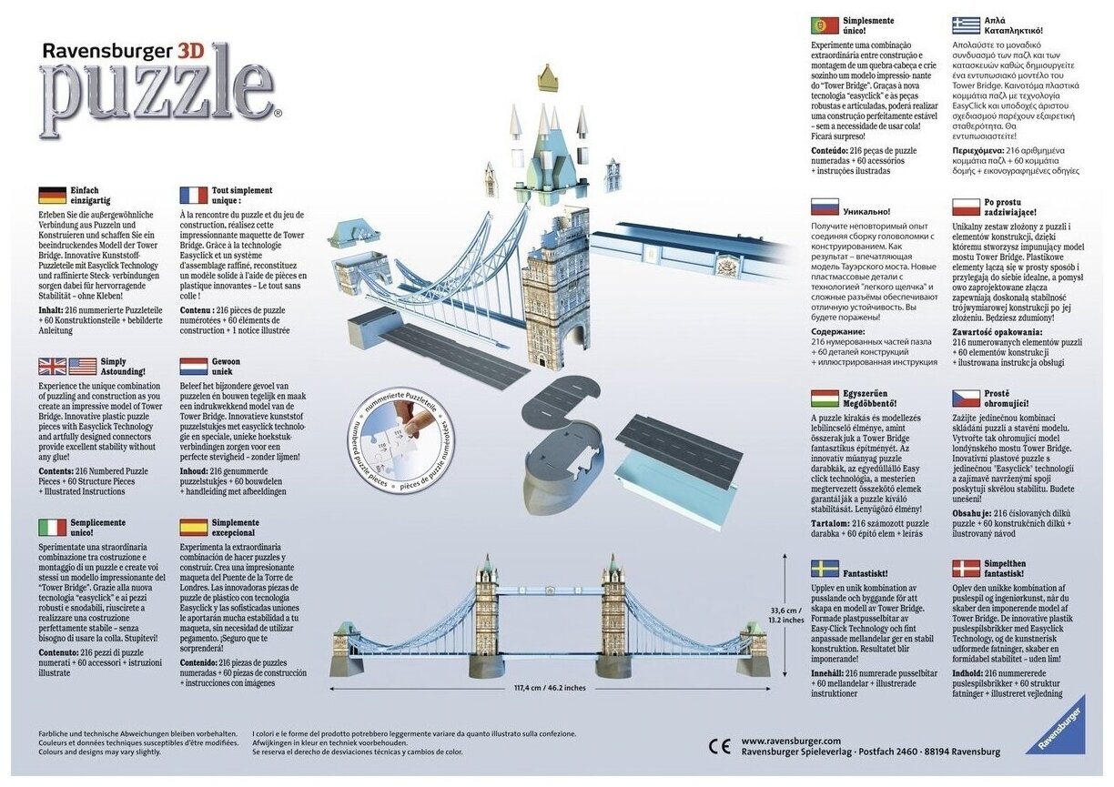 Пазл 3D Ravensburger Тауэрский мост в Лондоне 216 элементов 12559 информация: