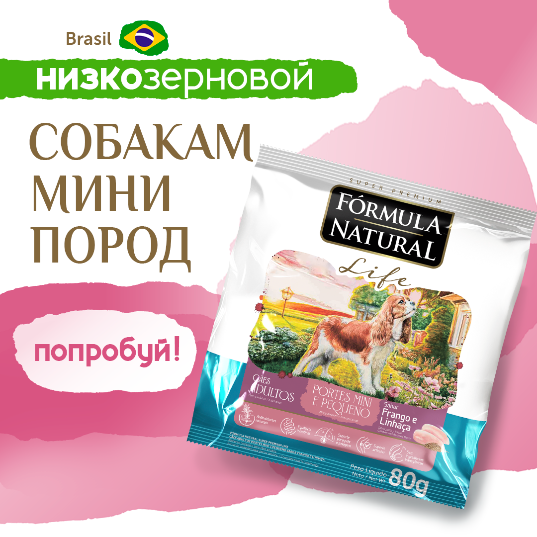 Сухой корм для взрослых собак маленьких и мини пород, Formula Natural Life Super Premium - низкозерновой, полнорационный, с курицей, Бразилия, 80 гр информация: