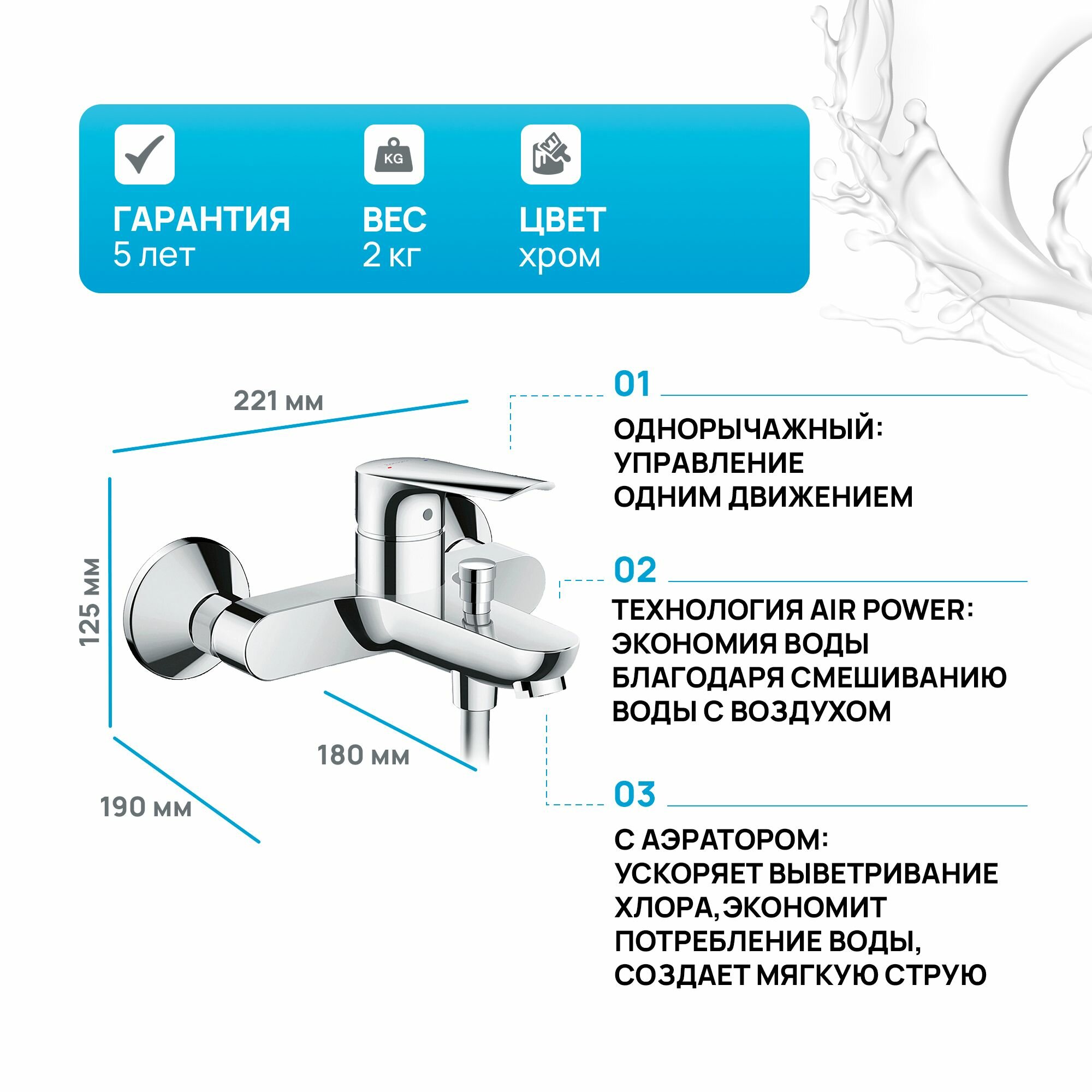Отзывы на Смеситель для ванны Hansgrohe Logis E, однорычажный, хром (71403000)