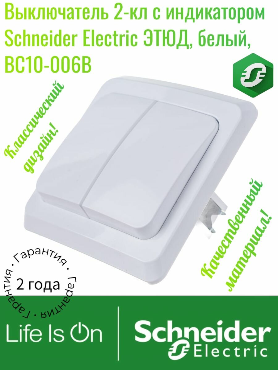 Выключатель SCHNEIDER ELECTRIC этюд 2-клавишный с подсветкой 10 АХ, белый, BC10-006B 286 ₽