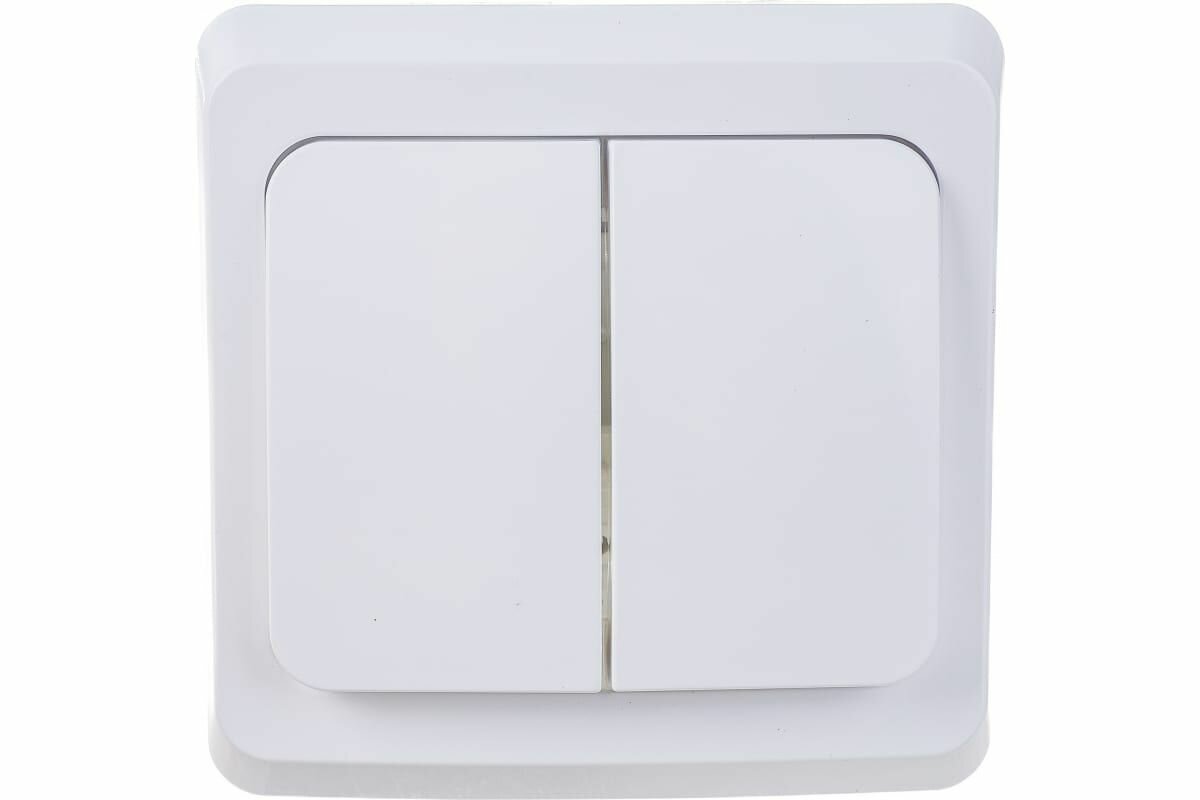 Выключатель двухклавишный Bylectrica Пралеска, брызгозащищенный, открытой установки, 6А, 250В, белый. А5 6-224.