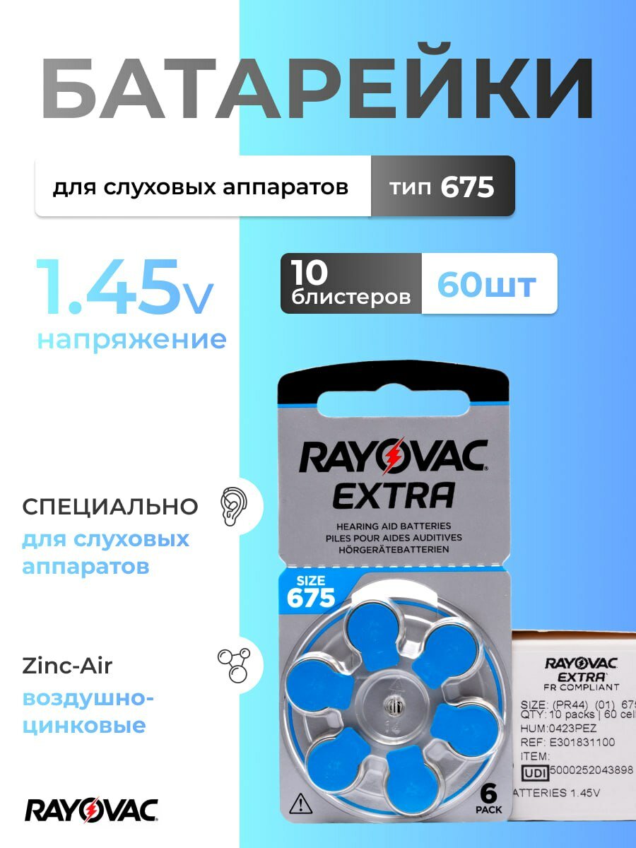 Батарейки Rayovac для слуховых аппаратов 675 (60 шт) информация: